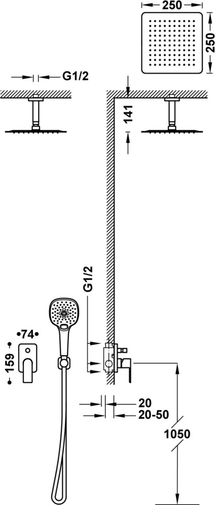 Форма верхнього душу - квадратна,