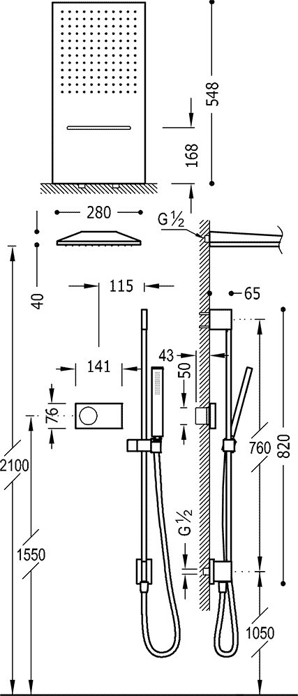 Форма верхнього душу - прямокутна,