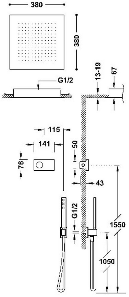 Форма верхнього душу - квадратна,