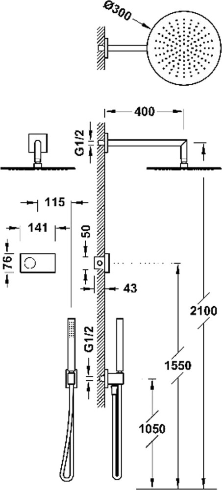 Розміри верхнього душу - 300 мм,