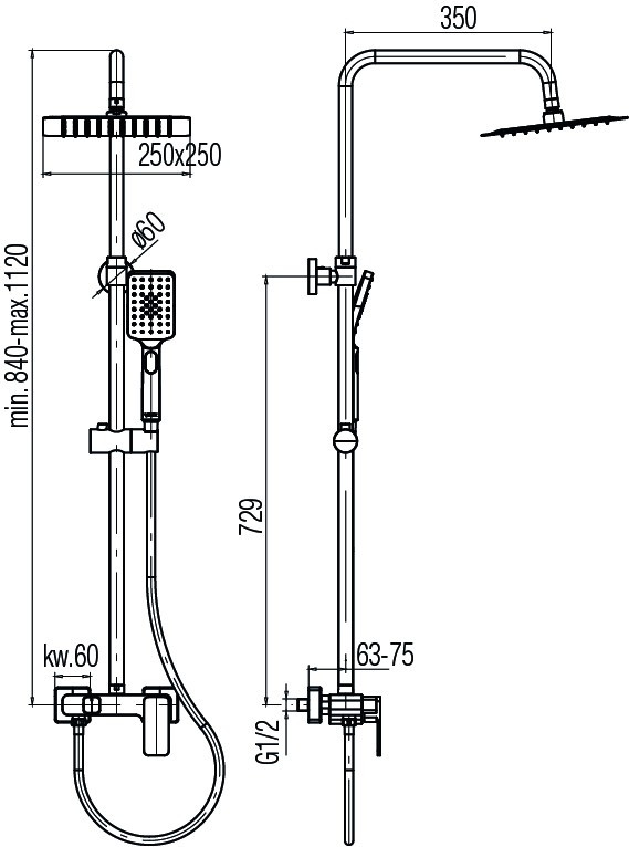 Розміри панелі/стійки - 840-1120x350 мм,