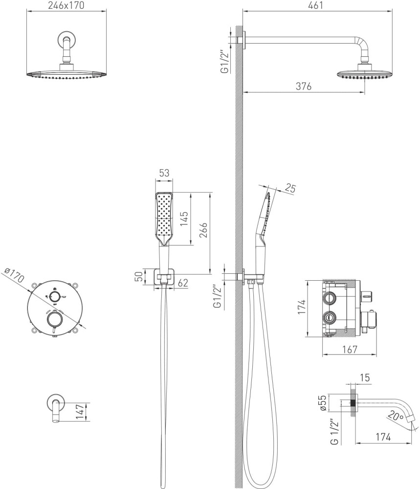 Форма верхнього душу - прямокутна,