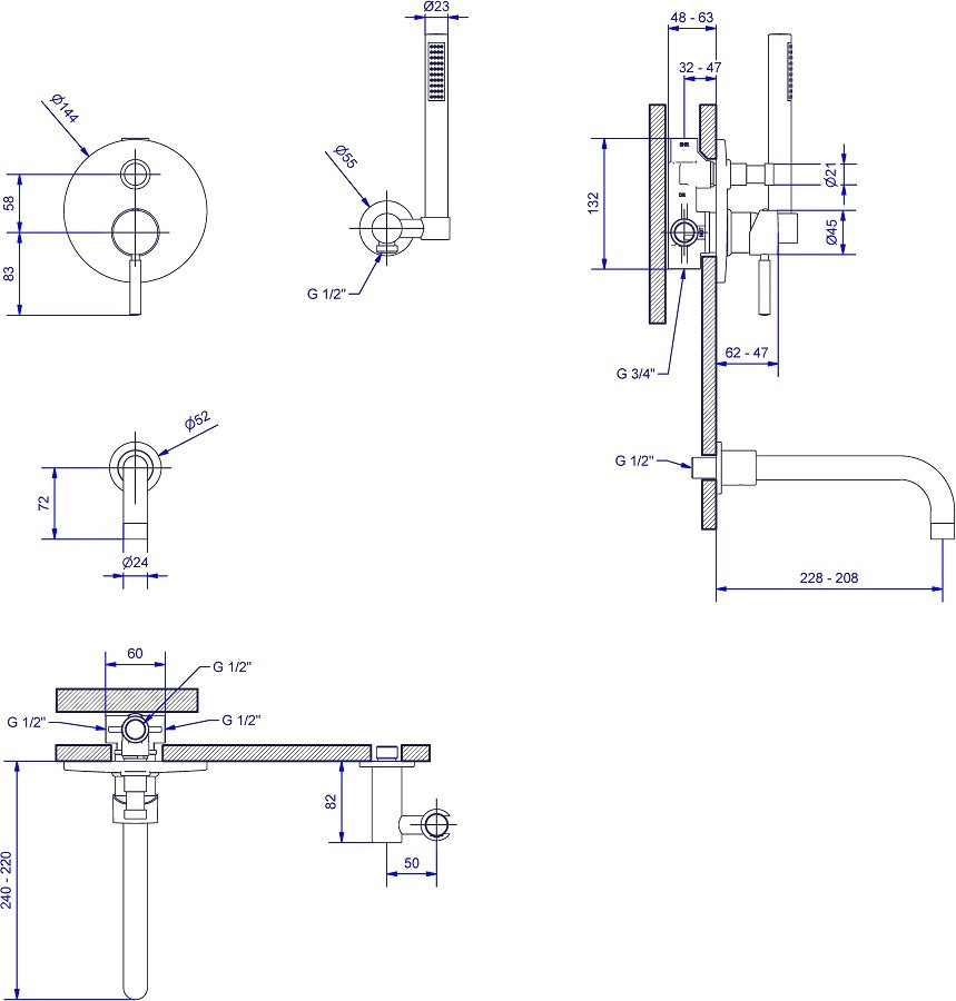 Кріплення ручного душу - настінний монтаж,