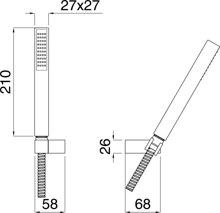 Розміри ручного душу - 27 мм / ширина /,