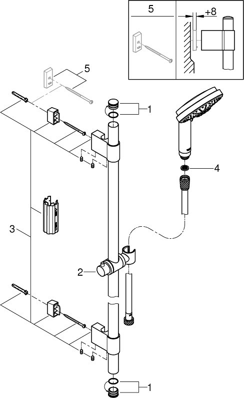 Кріплення ручного душу - на корпусі/стійці,