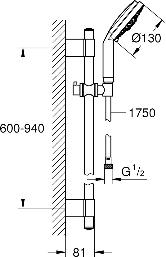 Розміри ручного душу - 130 мм,