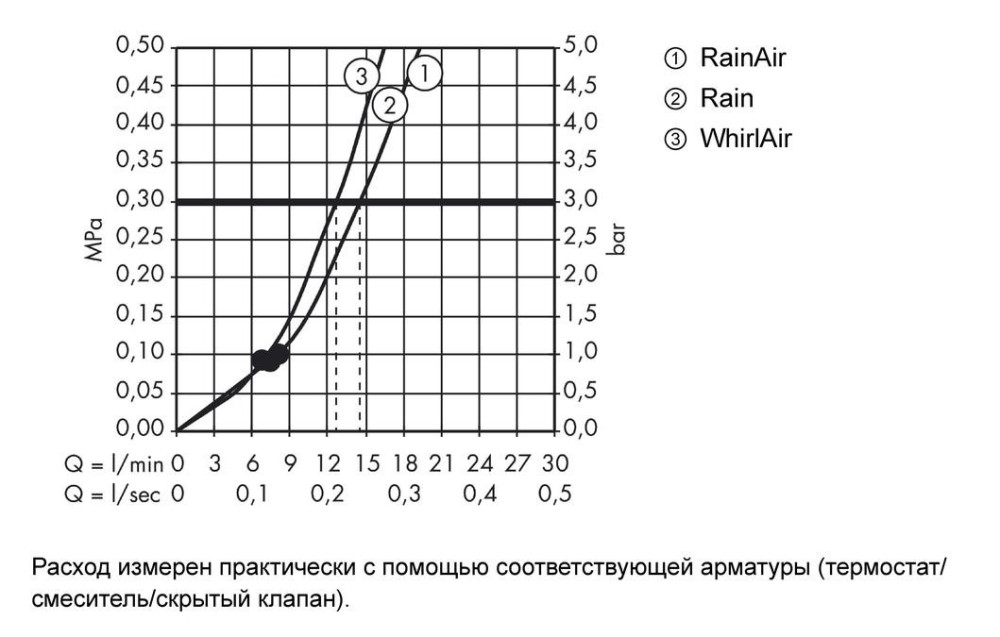 Витрата води (ручний душ) - 15 л/хв / при тиску 3 бар /,