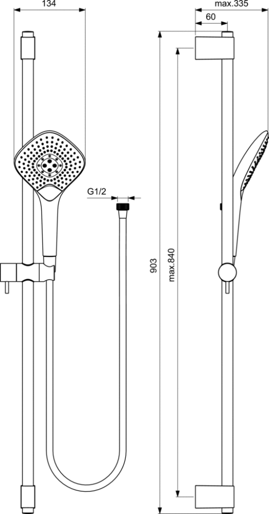 Розміри ручного душу - 134 мм,