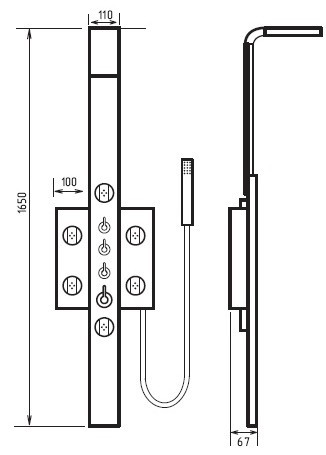 Форма верхнього душу - прямокутна,