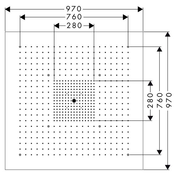 Розміри верхнього душу - 970 мм,