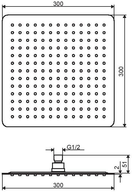 Розміри верхнього душу - 300 мм,