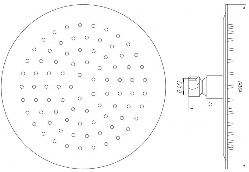 Розміри верхнього душу - 200 мм,