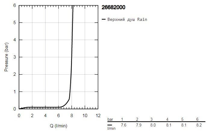 Витрата води (верхній душ) - 8 л/хв / максимальний, при тиску 3 бар /,