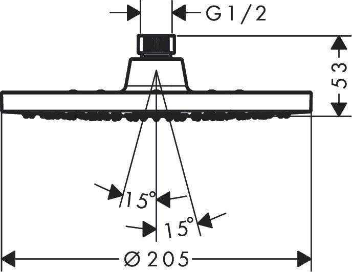Розміри верхнього душу - 205 мм,