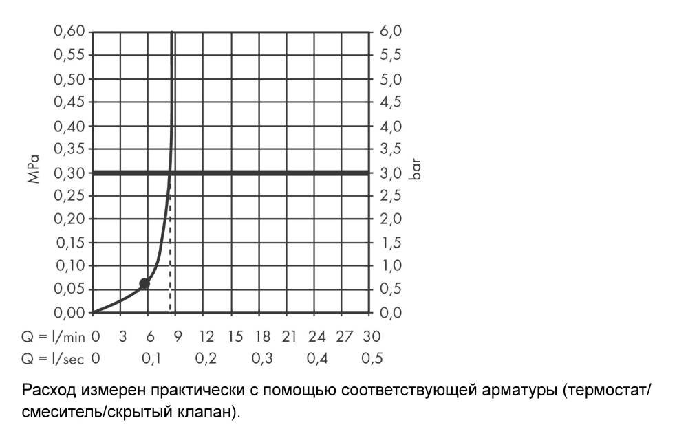 Витрата води (верхній душ) - 8.5 л/хв / максимальний, при тиску 3 бар /,