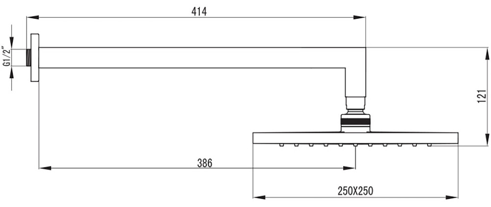 Форма верхнього душу - квадратна,