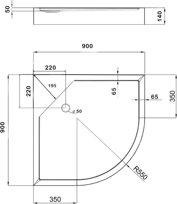 Душовий піддон Kapielka ST90x90x14 низький, напівкруглий, діаметр зливу 52 мм Lidz