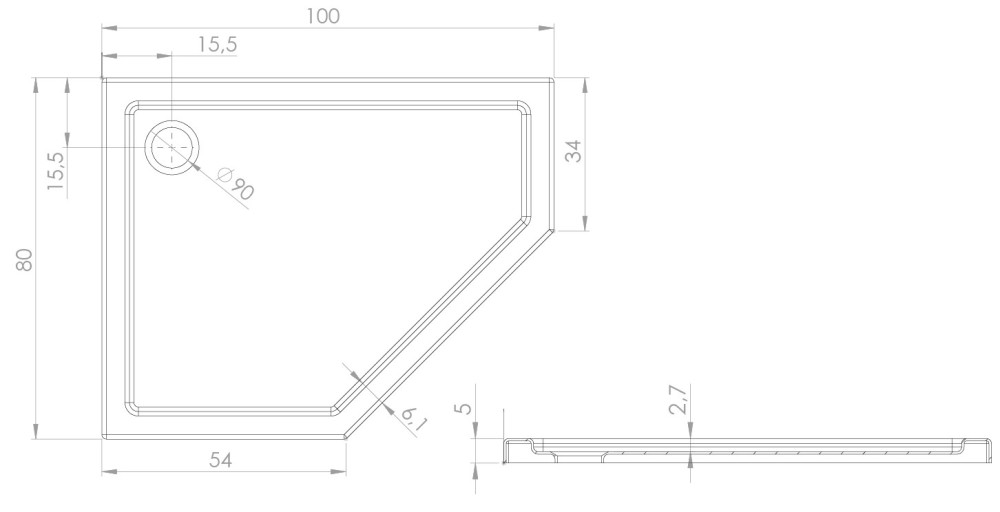Діаметр отвору для сифону - 90 мм,