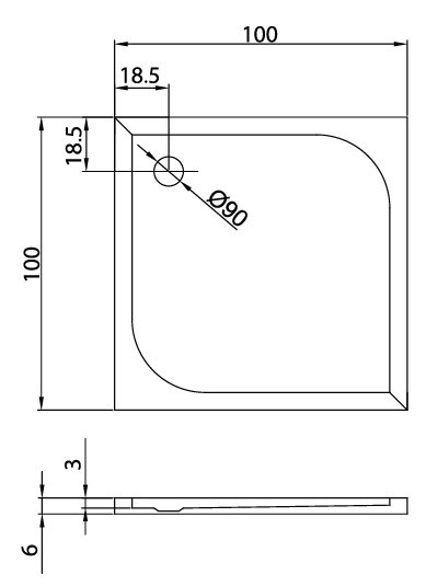 Діаметр отвору для сифону - 90 мм,