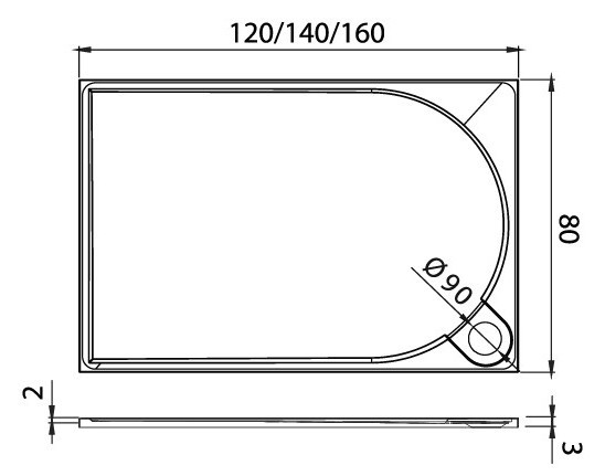 Діаметр отвору для сифону - 90 мм,