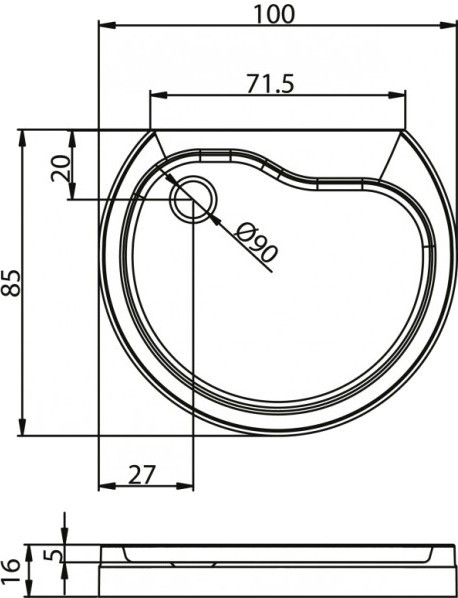 Діаметр отвору для сифону - 90 мм,