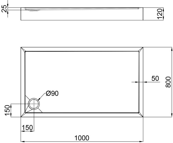 Діаметр отвору для сифону - 90 мм,