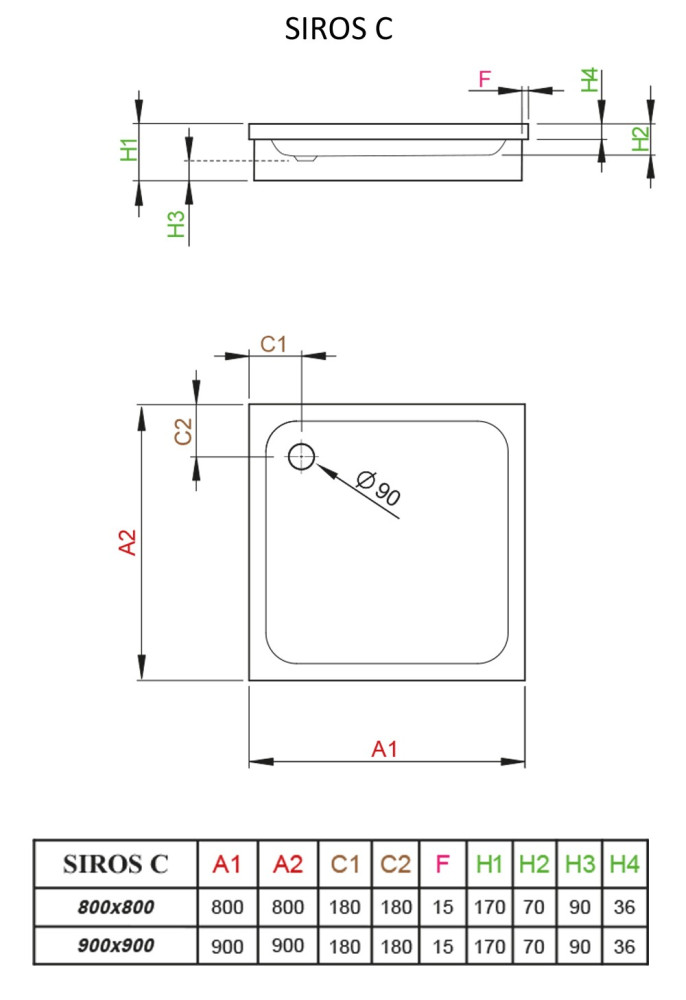 Діаметр отвору для сифону - 90 мм,