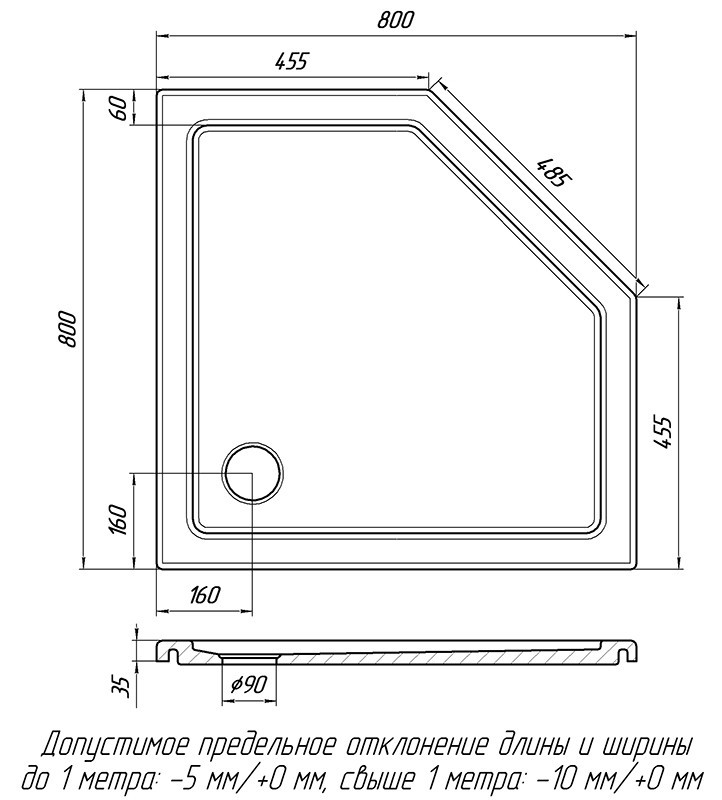 Вид піддону - мілкий,