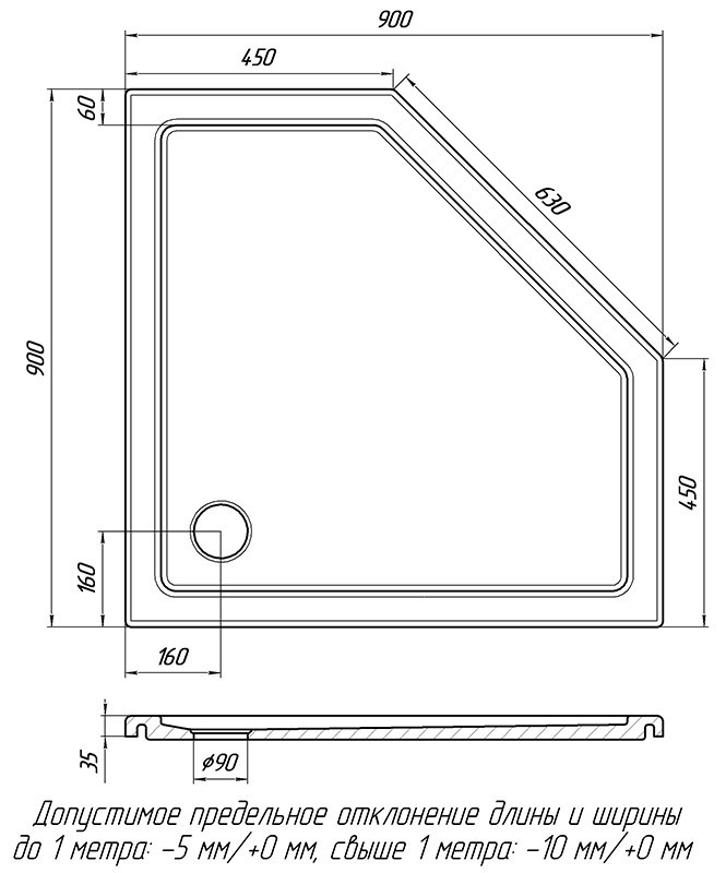Діаметр отвору для сифону - 90 мм,