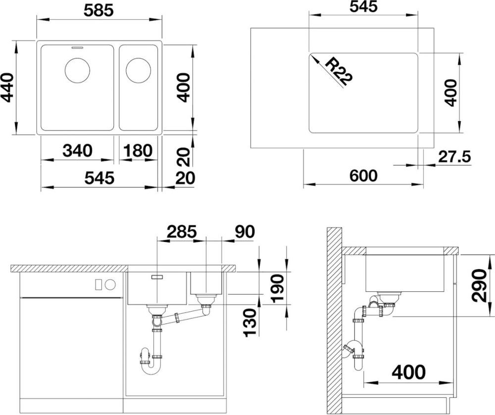 Кухонна мийка Blanco Andano 340/180-U 522979 585x440 ліва