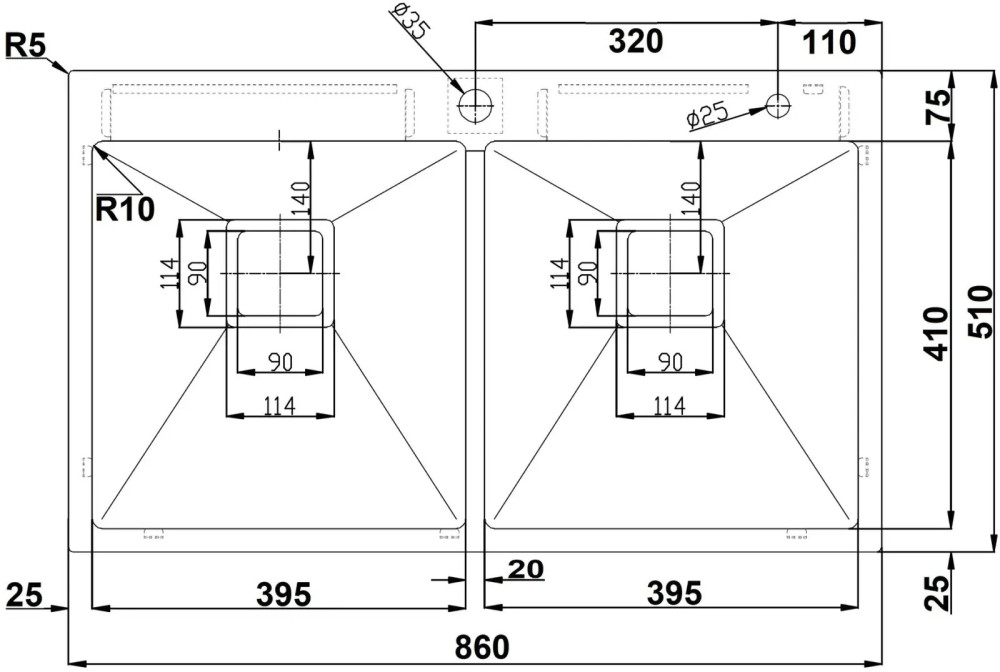 Діаметр отвору під змішувач - 35 мм,