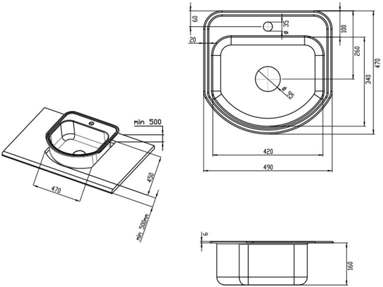 Діаметр отвору під змішувач - 35 мм,