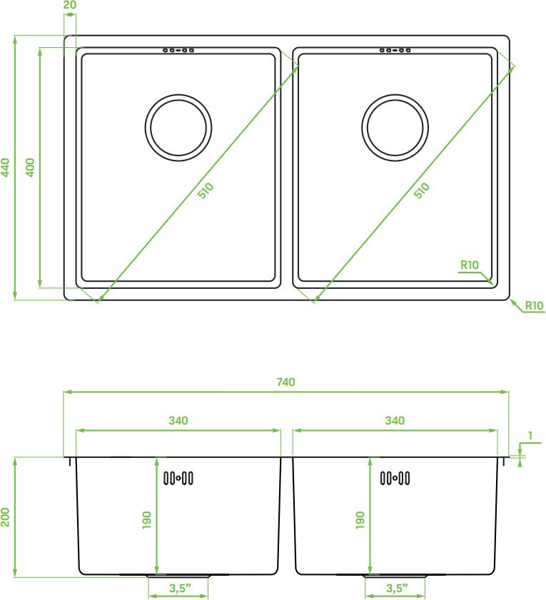 Кухонна мийка Laveo Ross 740 SLR 020T