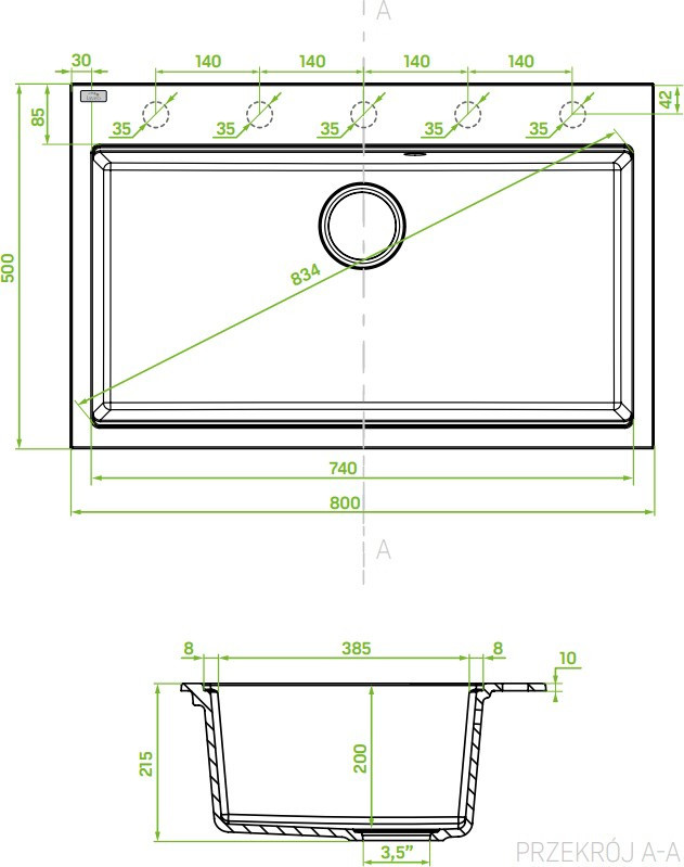 Діаметр отвору під змішувач - 35 мм,