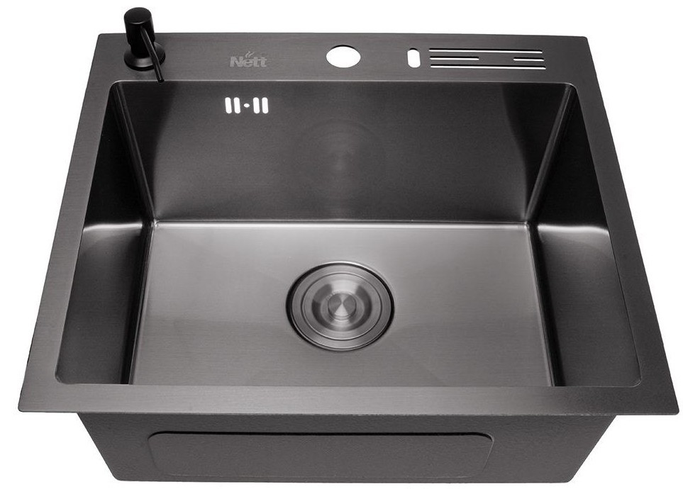 Чорна кухонна мийка 45 см накладна з нержавійки Nett NВ-5245 (NT-041620)