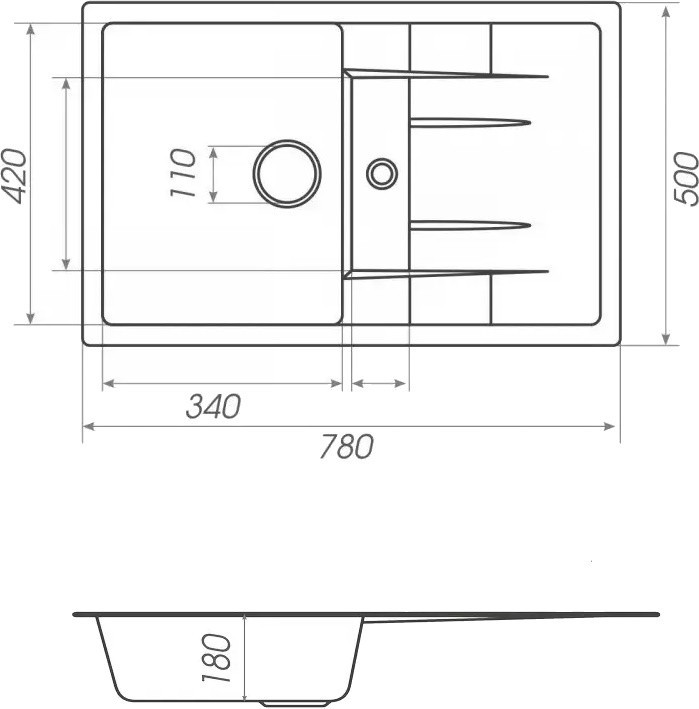 Кухонна мийка Platinum Pretso 780x500