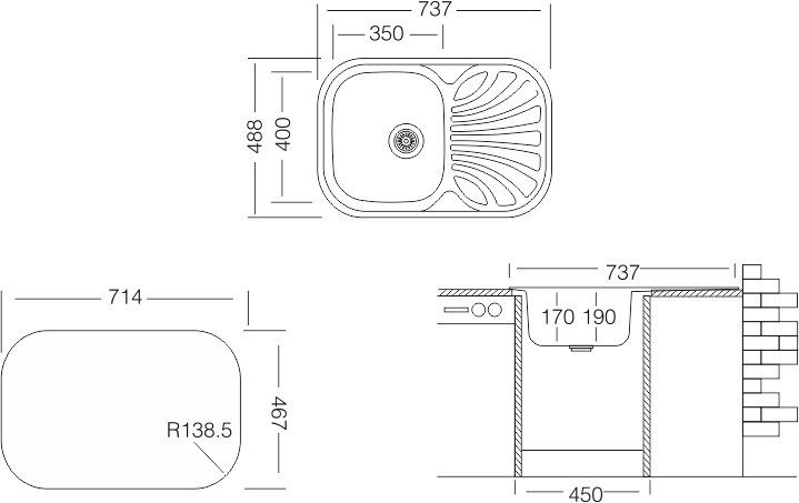 Мін. ширина шафи (бази) - 450 мм,