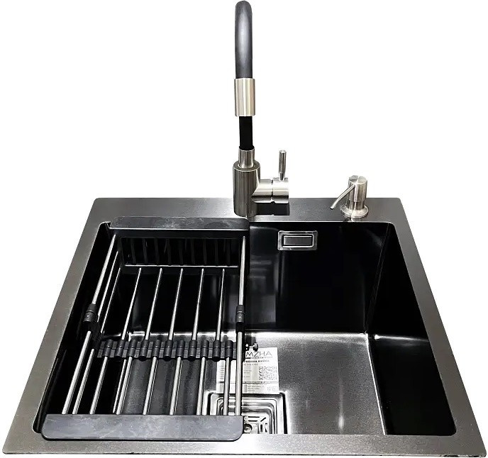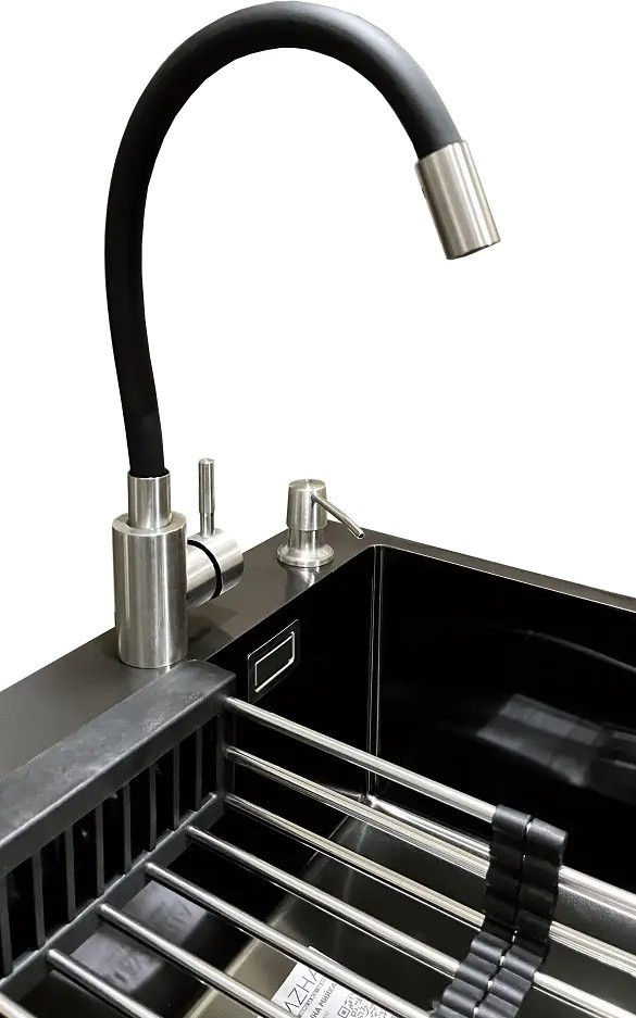 змішувач / Romzha Flex BL RO41531 / друшляк для мийки (коландер) дозатор миючого засобу сифон