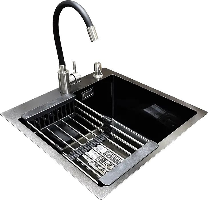 Комплектація - змішувач / Romzha Flex BL RO41531 / друшляк для мийки (коландер) дозатор миючого засобу сифон,
