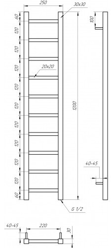 Рушникосушарка Genesis Aqua Scala 250x1200