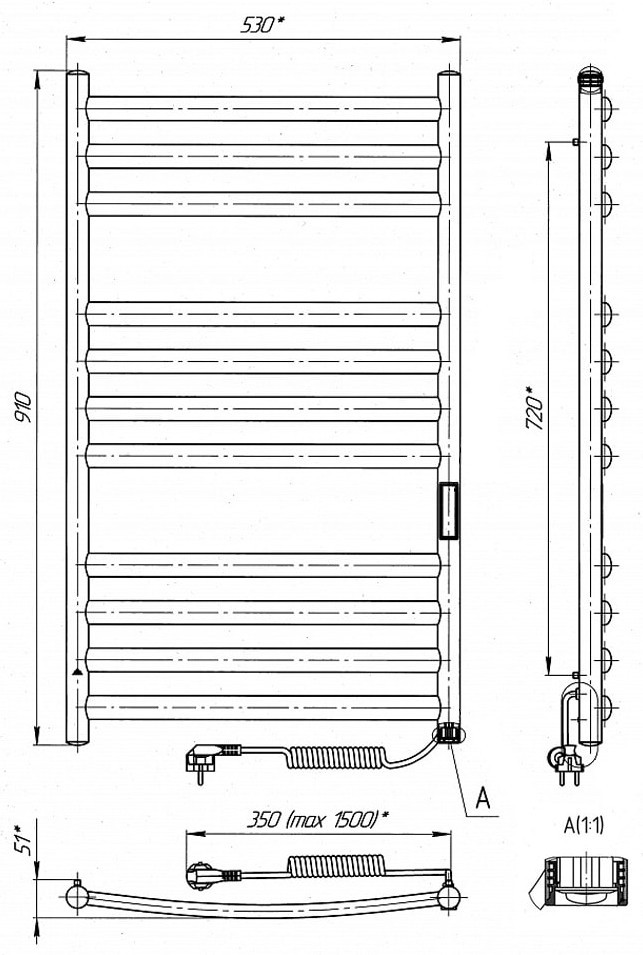 Электрический полотенцесушитель Laris Классик Премиум П11 500 х 900 Э (подкл. справа) S (73207661)