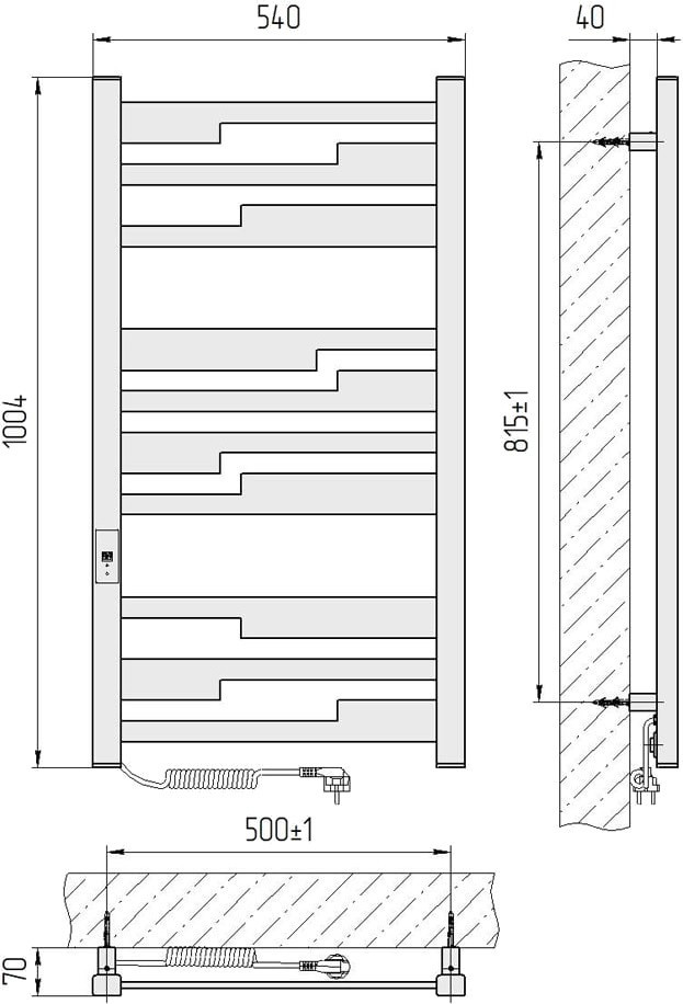 Рушникосушка електрична Laris Зебра Тетріс ЧФ(ГМ)10 500х1000 Е 73207854 ліве підключення