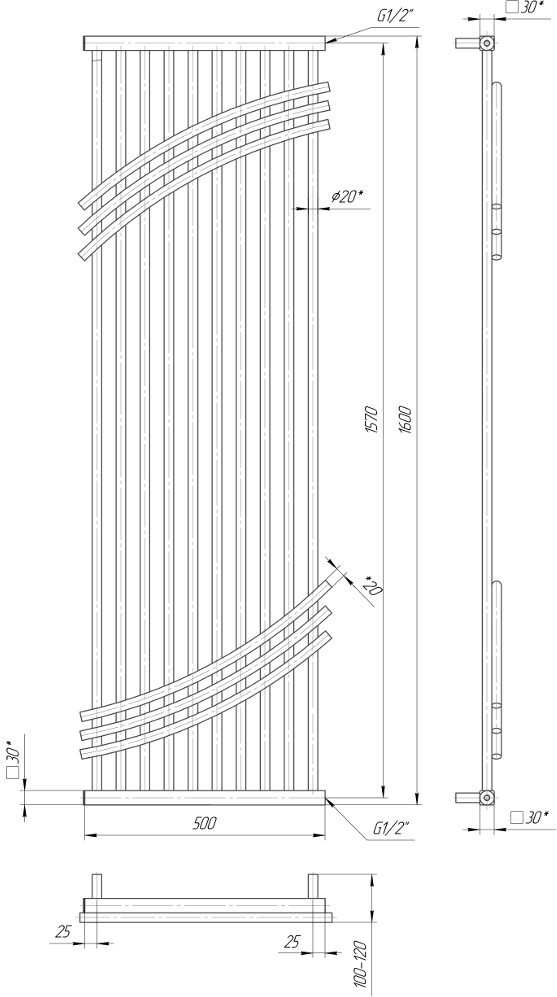 Рушникосушарка MARIO Bordeaux 500x1600 (1.2.1200.03)