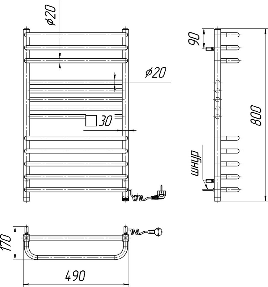 Полотенцесушитель Mario Гера Люкс-І 800х500170 электрический, 2.2.1900.03.Р