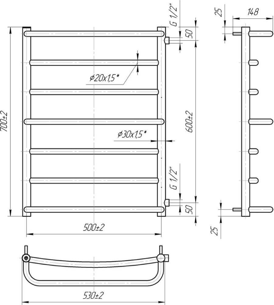 Рушникосушарка MARIO Lux B/P-1/2 550x700