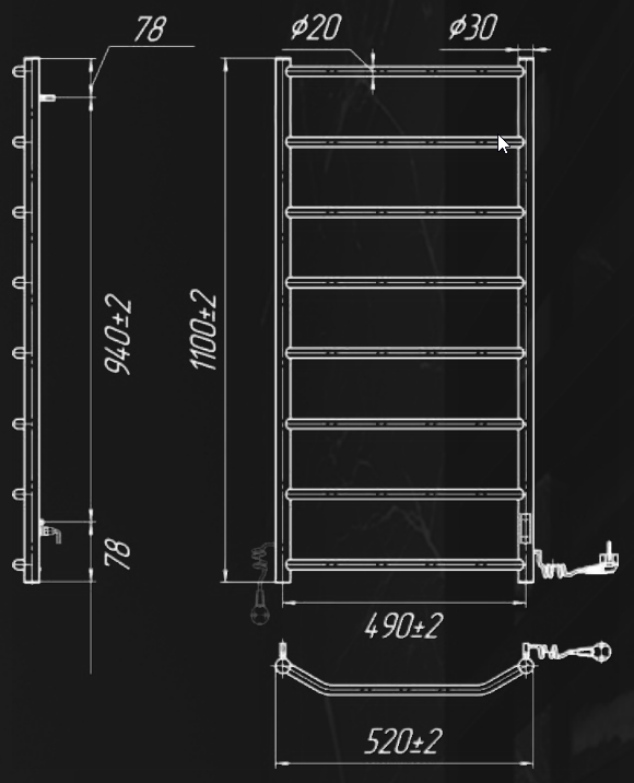 Рушникосушарка електрична Mario ЛАЙТ Трапеція НР-І 1090х530110 TR К 2.3.2817.10.P