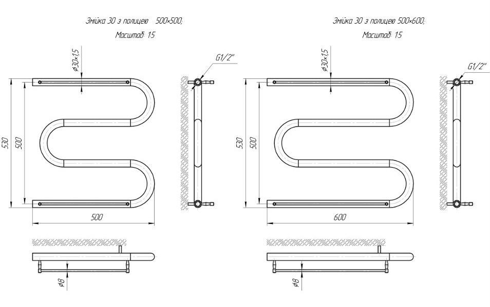Рушникосушарка MARIO Zmeyka 30 Shelf 600x500 (1.1.3101.05.P)
