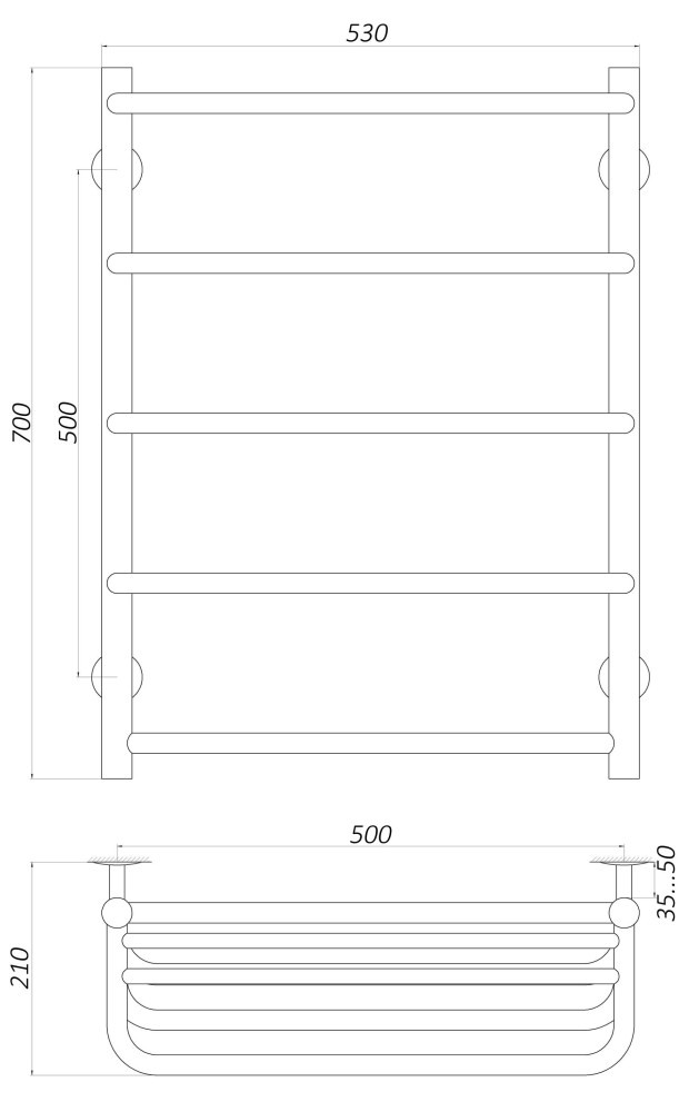 Рушникосушарка UNIO Kaskad Skoba 500x700 000020650
