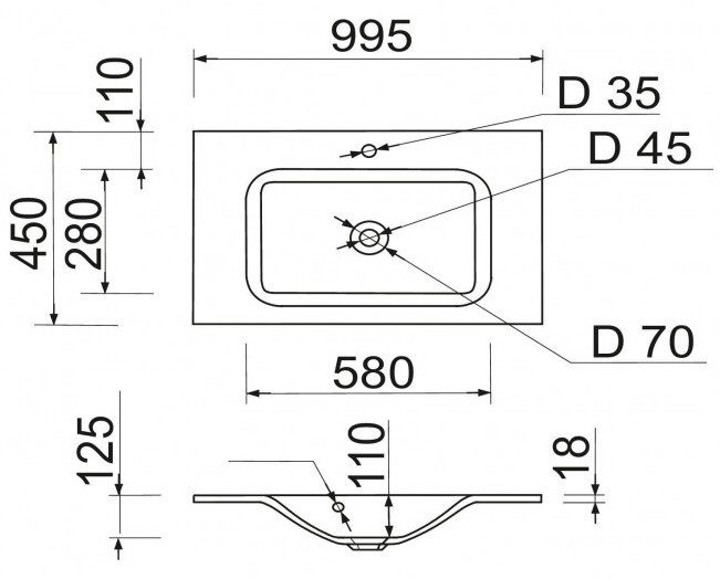 Діаметр отвору під змішувач - 35 мм,