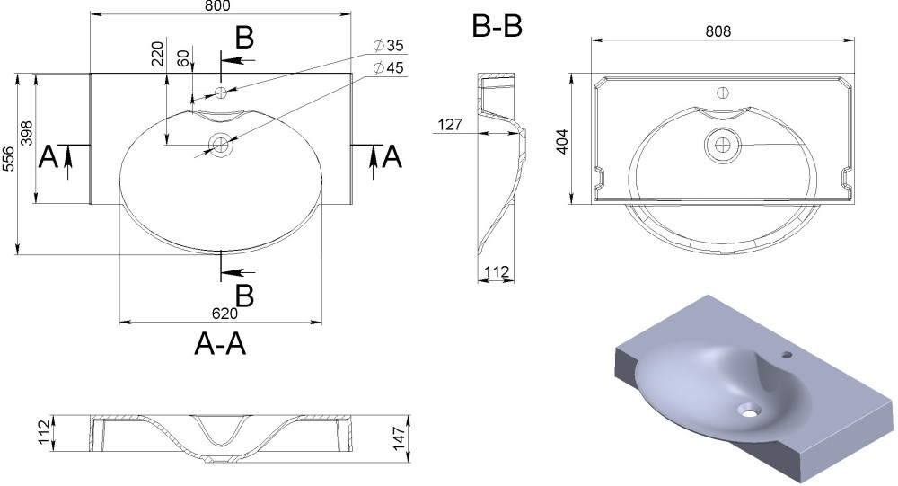 підвісний / на кронштейнах / накладний на тумбу накладний на стільницю